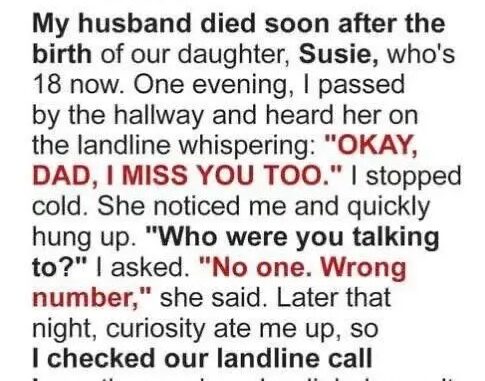 I raised Susie alone for 18 years, keeping her father’s memory alive through photos and stories. Then one night, I overheard her whisper on the phone, “I miss you too, Dad.” She claimed it was a wrong number — but I checked the call log.