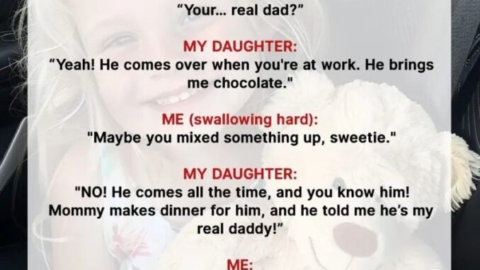 She nodded. “He comes when you’re at work. Mommy makes him dinner. He told me he’s my real daddy.”