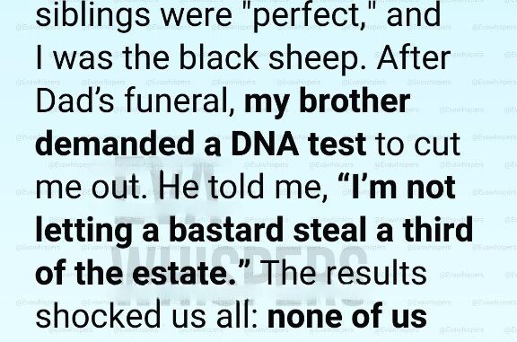 I agreed, tired of living under suspicion. Weeks later, the results arrived—and shattered everything. None of us—Jeff, Sarah, or me—were biologically related to our father.