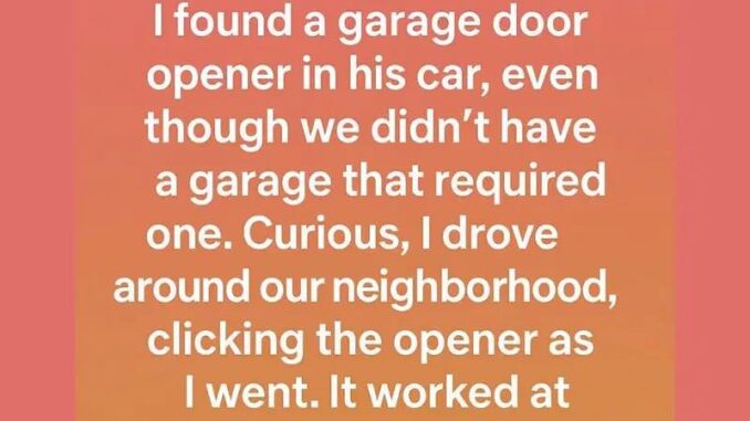 After losing her husband, a woman discovered a mysterious garage opener among his belongings. Curious, she walked around the neighborhood—and one garage opened.