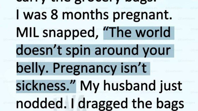 Before he could answer, my mother-in-law snapped, “The world doesn’t revolve around your belly. Pregnancy isn’t an illness.”