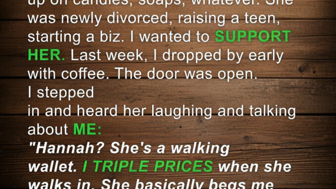 One morning I arrived early and overheard her laughing with her boyfriend. “Hannah? She’s a walking wallet. I triple the prices when she walks in.” My heart sank.