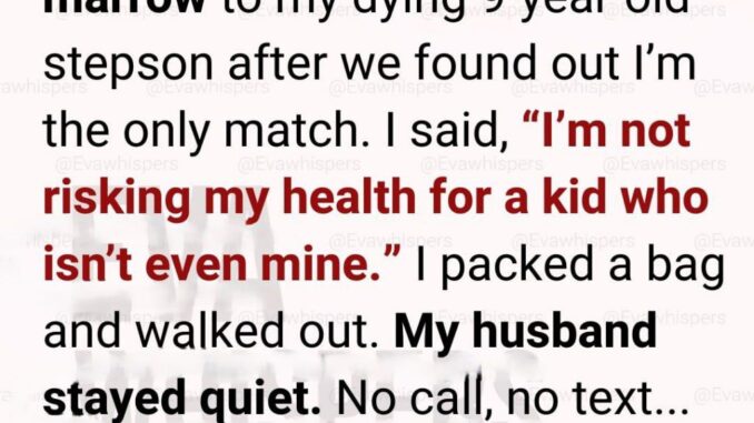 I once refused to save my nine-year-old stepson’s life. When doctors said I was the only bone marrow match for Leo, I said no. I told myself he wasn’t my biological child, that the surgery had risks, and that I hadn’t signed up for something so extreme. My husband didn’t argue—he just went silent. I left the house and stayed with my sister, convincing myself they would find another donor.