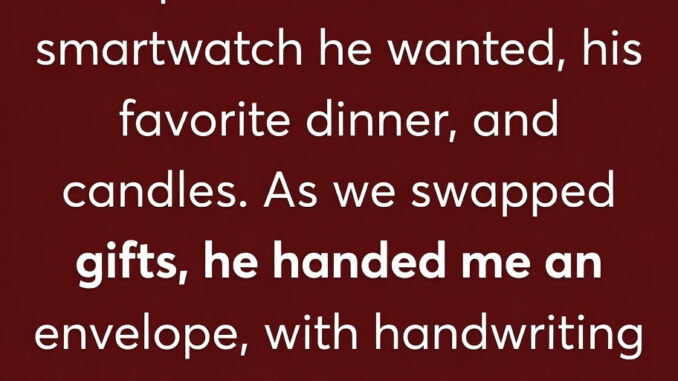 My husband and I had our 2nd anniversary. I surprised him with the smartwatch he wanted, his favorite dinner, and candles. When we exchanged gifts, he handed me an envelope in handwriting I didn’t recognize.