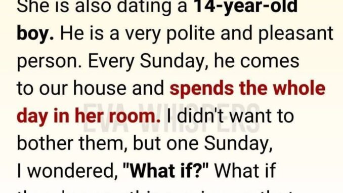 Every Sunday, my daughter and her quiet, polite boyfriend disappeared behind a closed bedroom door. The silence bothered me. It didn’t sound like teenagers—it sounded like hiding. Week after week my imagination ran wild.