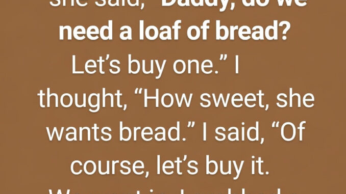 I picked up my 3-year-old daughter from daycare one sunny afternoon. On the way home, we passed a small grocery store. She tugged my hand and asked, “Daddy, do we need a loaf of bread? Let’s buy one.”