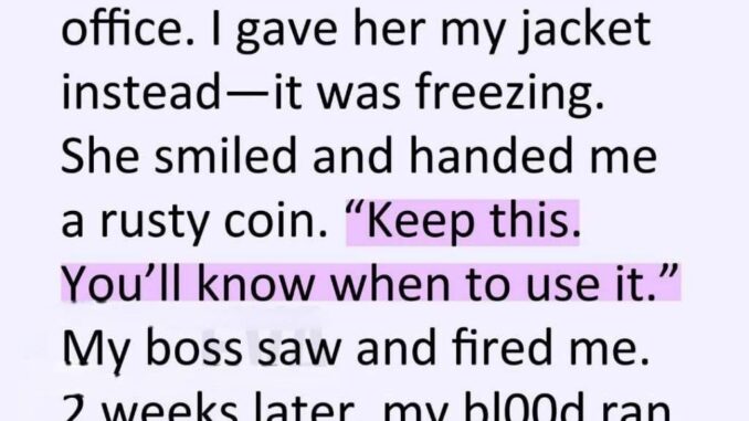 This story is a vivid illustration of how a small act of kindness can ripple far beyond what we imagine. You saw a woman in the cold, recognized her need, and offered your jacket—even at personal cost. That gesture wasn’t just warmth for her; it became a test of character.