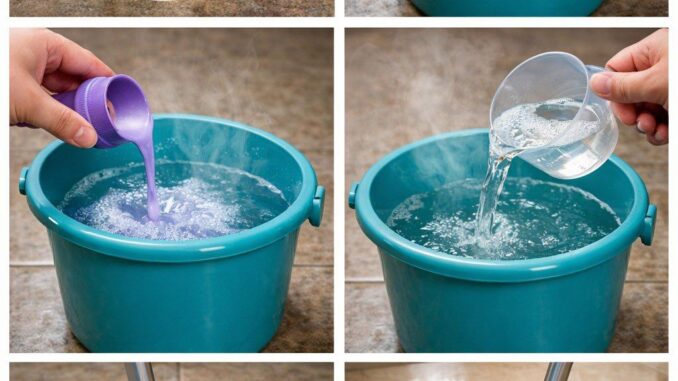 Here’s a simple trick to make even the dullest floors shine, using ingredients you probably already have at home. Mix hot water with about 120 ml of white vinegar and a cap of scented fabric softener. Vinegar removes residue and mineral buildup, while fabric softener adds smoothness and a fresh scent. Stir, mop, and your floors will look clean, polished, and revitalized—no expensive cleaners needed.