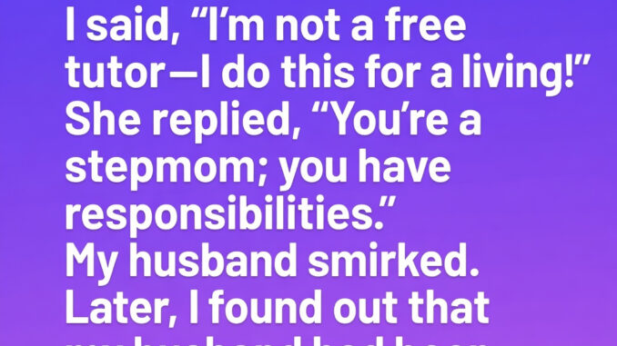 As a teacher, my husband’s ex expected me to tutor their kids in French for free. I refused, saying it’s my profession. She argued it was my duty as a stepmom—and I later learned my husband had already promised I’d do it without asking me.