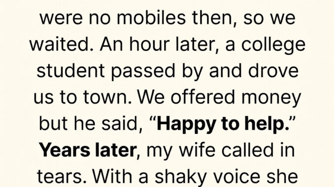 At 2 AM, our car broke down on a deserted road. A kind college student, Zayd Nouri, stopped and drove us to safety, refusing any payment.