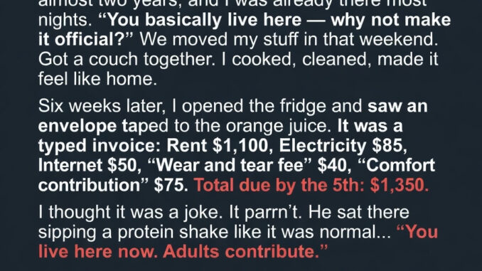 Tyler asked me to move in, and at first it felt like love and partnership. But when he gave me an itemized bill for living there, I realized he saw it as business. I calmly agreed, then brought in a “roommate” to make a point—and left. Love shouldn’t feel transactional.
