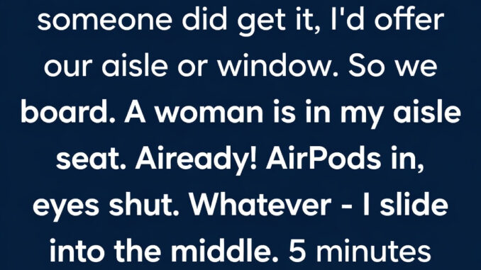 I booked window and aisle hoping the middle stayed empty, but a woman took the aisle without asking. When the rightful passenger arrived, she had to move, clearly annoyed.