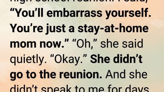 When I finally spoke to her, I didn’t make excuses. I admitted I’d been careless, that I’d treated her like a role instead of a person. She didn’t forgive me right away—she just listened, tired.