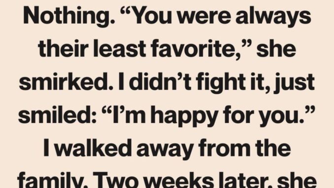 When the lawyer read the will, everything went to my sister—house, savings, everything. She smirked, expecting anger or tears from me. I didn’t give her either. “I’m happy for you,” I said, and walked away from the drama.