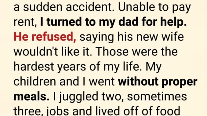 At 23, a woman became a single mother after her fiancé died. Struggling, she asked her father for help—but he refused, choosing his new wife over her and his grandchildren. She endured years of hardship, working multiple jobs and slowly building a stable life.