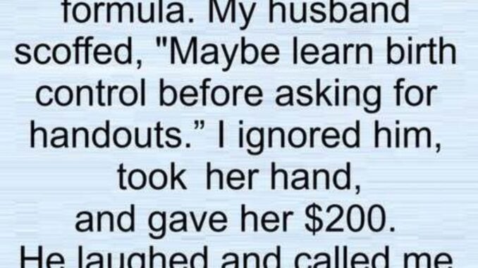 She didn’t change in the boardroom; she changed in the baby aisle, when she stepped past her husband’s sneer and chose a stranger’s dignity over his approval. The money she pressed into a shaking hand wasn’t just cash—it was a silent declaration: I won’t stand by cruelty and call it love. That moment, once crossed, couldn’t be undone.