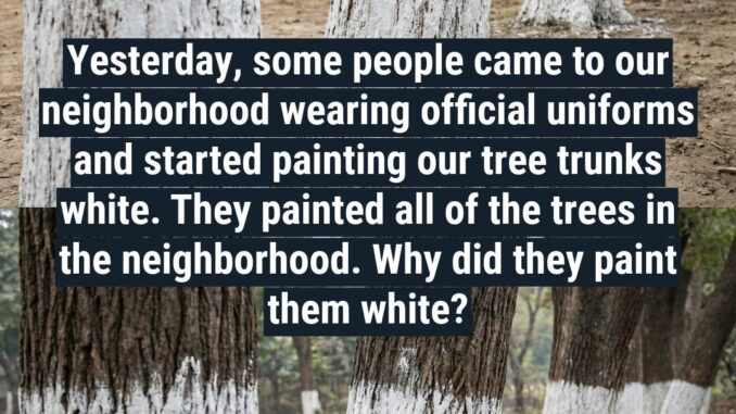 Trees with white-painted trunks aren’t decorative—it’s protection.