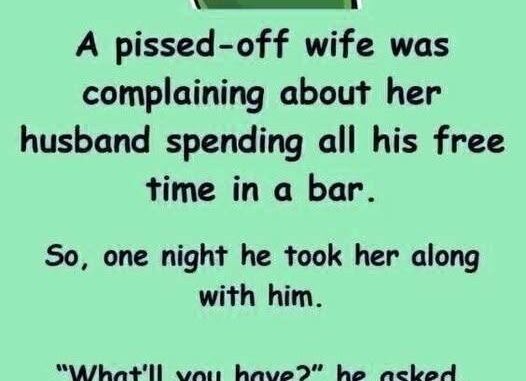 A husband always spent his free time at the pub, so one night he brought his wife along.
