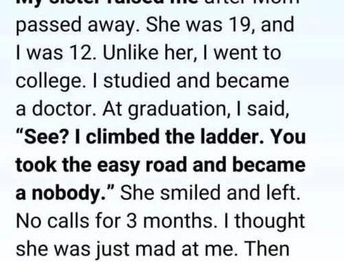 Now I understand: success isn’t about status or recognition, but about lifting others up. And my sister, without ever asking for anything, was the greatest person I’ve ever known.