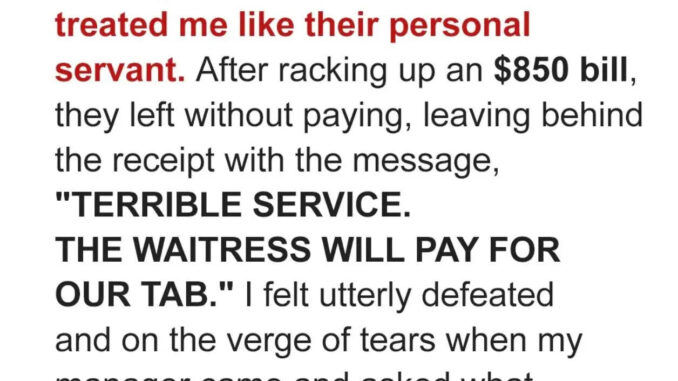 A rude family ran up an $850 bill, treated the staff badly, and left without paying—blaming the waitress.