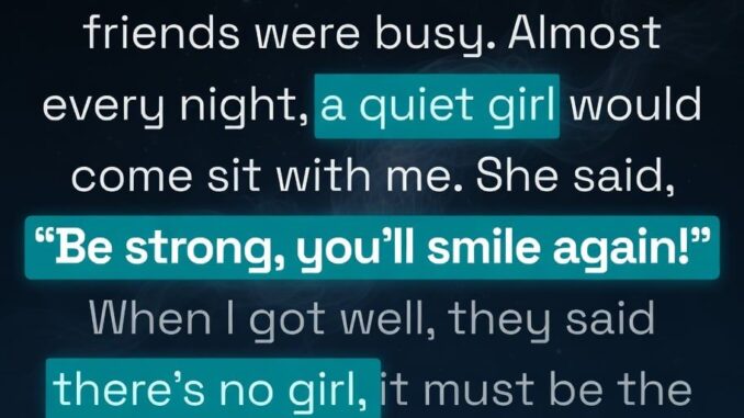 After a serious car accident, I spent 15 days in hospital unable to speak, feeling isolated and alone. Each night, a young girl appeared beside my bed, silently comforting me and once telling me, “Be strong. You’ll smile again.” When I later asked staff, they insisted no such visitor existed.