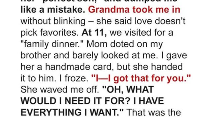 Days later, she showed up at my door desperate—Jason had learned from my grandmother’s final message that I existed and was angry she had hidden me. I agreed to meet him, but not for her.