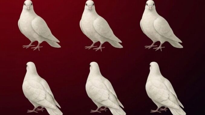 At first, the image looks simple—identical white doves arranged in a calm, orderly pattern. But the longer you look, the more your mind starts searching for meaning, grouping shapes, spotting differences, and creating structure where none is obvious.
