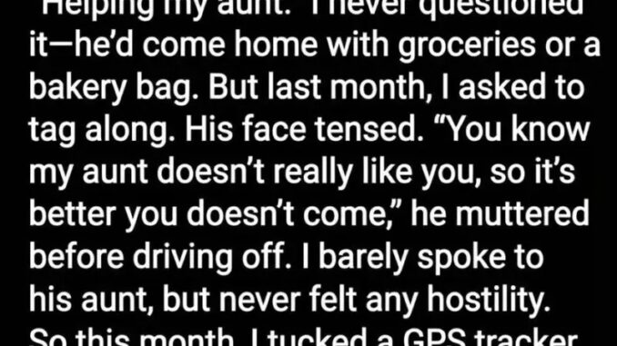 The next month, I followed him. He drove to a run-down house and hurried inside. When I knocked, I discovered the truth: he’d been secretly caring for his struggling, proud aunt—bringing supplies, cleaning, and keeping her company. He kept it hidden because he feared she’d refuse help if others knew.