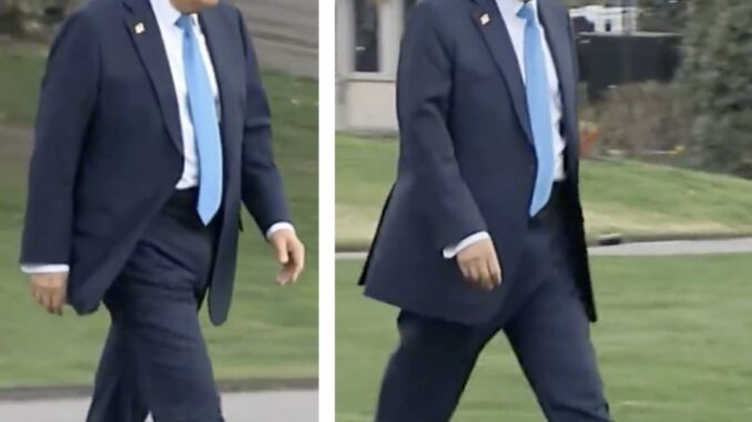 At first glance, it looks like a routine moment—Donald Trump walking toward Marine One. But a small detail quickly grabbed the internet’s attention.