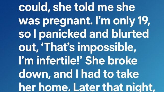 Before I could say anything, she told me she was pregnant. I’m 19, and in panic I blurted, “That’s impossible—I can’t have children.” She froze and started crying. I drove her home in silence, unable to sleep that night.