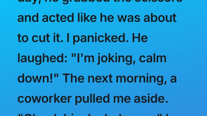 A coworker named Silas seemed oddly fixated on my long curly hair—watching it a little too closely, lingering too long. One day, he even pretended to cut it with scissors, which left me shaken.
