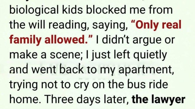 They kicked me out of the will reading—said only “real family” could go in. I didn’t argue. I went home feeling erased.