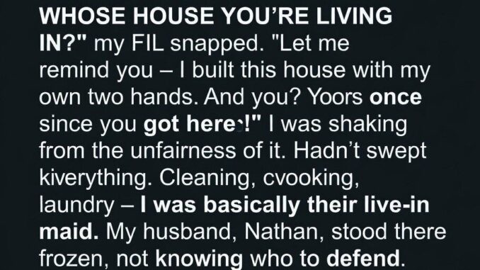 When my father-in-law got angry over a spilled mop bucket and said, “Did you forget whose house you’re living in?”, I was shocked. For a year, I had cooked, cleaned, and kept the peace while living in his home and waiting for my husband Nathan to move us out.