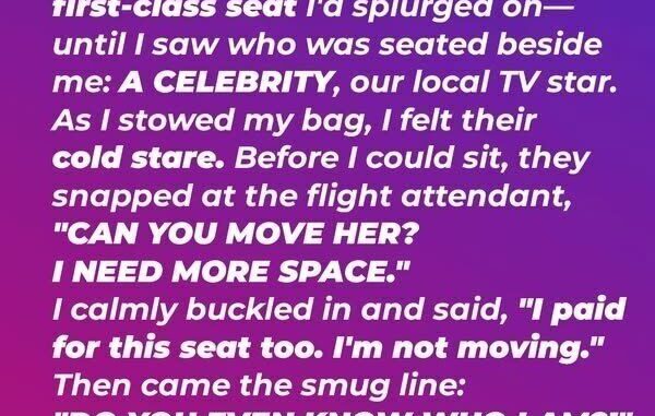 On a long-haul flight, excitement turned tense when a famous TV personality demanded that I be moved from my first-class seat. I calmly refused, saying I’d paid for it too.
