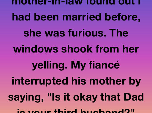 When my future mother-in-law discovered I’d been married before, she erupted — the windows shook from her yelling. My fiancé interrupted: “Is it okay that Dad is your third husband?” She snapped back, “That was different! I was young and learning!”