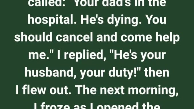 I replied coldly: “He’s your husband — your duty.” Then I boarded the plane. The next morning I pulled back the curtains in my beachside suite — and froze. Floating just offshore was a sleek white yacht: his yacht. The one he guarded like treasure, never let me near.