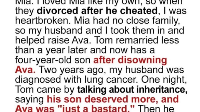 Tom had married Mia, whom we adored. When Ava was born, life seemed perfect — until Tom’s choices damaged the marriage. One rainy night, Mia arrived at our door with baby Ava, heartbroken. From then on, we helped raise Ava in a loving, stable home. Tom moved on, remarried, and eventually stopped contacting her.