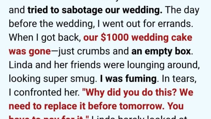 Linda smirked. “We ate it. It was too sweet anyway. And who pays $1,000 for a cake? Oh right—you.”