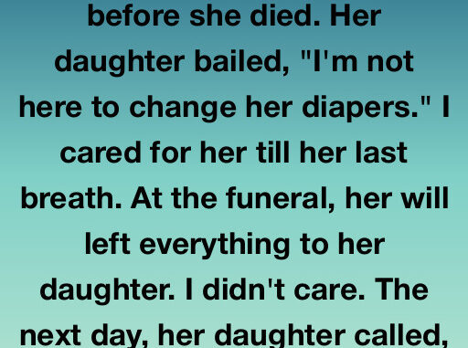 My stepmom, Norma, fell so ill she was in a vegetative state for months before she died. Her biological daughter Claudia refused to help — saying “I’m not here to change her diapers.” I stepped in, cared for Norma until her last breath, bathed her, sat by her nights, held her hand the night she died. At the funeral, Norma left everything — her house, savings, jewelry — to Claudia, and I didn’t mind: I hadn’t cared for money.