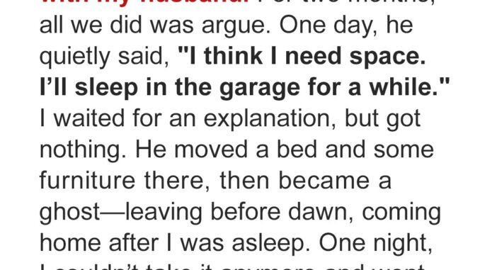 My husband moved into the garage and kept a painful silence. For weeks he slept there, left before dawn, came home after I was asleep, and ignored all my messages. The house felt hollow, our connection fading. I told myself it was just a phase, but his silence became a wall between us.