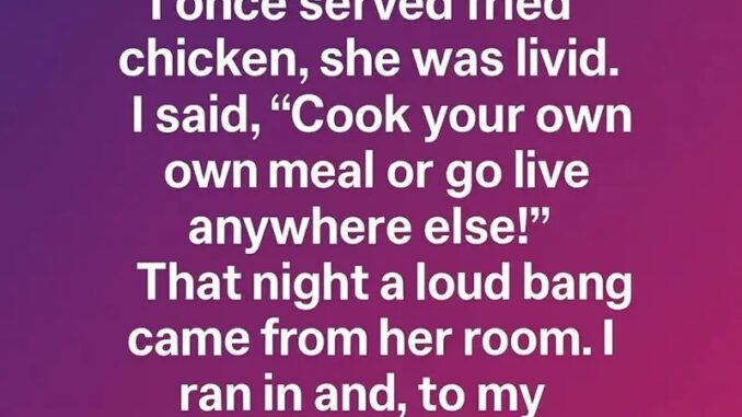 One night I served fried chicken and she got upset, saying it broke her strict rules. I got frustrated and told her to make her own meals if ours didn’t work. Later that night I heard a loud noise — I found her on the floor crying. She said she was exhausted from trying to be perfect, afraid of gaining weight, and scared of judgment. Her healthy habits had turned into pressure she couldn’t handle.