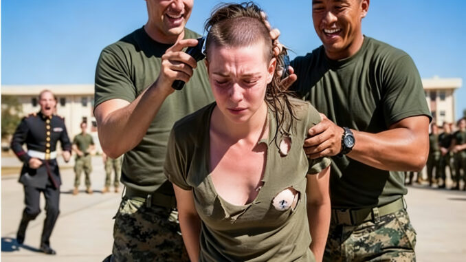 Under the Nevada sun at Camp Riverside, Sergeant Krueger mocked “Private Mara Brennan” as clippers carved through her hair. She stood rigid, silent.