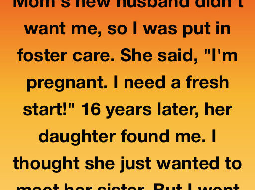 My dad died when I was nine. When my mom remarried, her new husband didn’t want me. She told me, “I’m pregnant. I need a fresh start,” and sent me into foster care. I still remember my suitcase by the door and how she wouldn’t meet my eyes, one hand resting on her belly like I was already a ghost.
