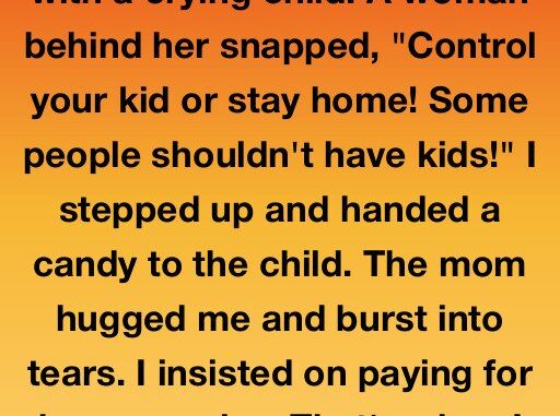 Without thinking, I grabbed a strawberry candy, knelt, and held it out. The boy paused mid-scream. Just enough. Sarah exhaled, tears forming. She hugged me in relief. I covered her groceries, tucked a twenty into her son’s hoodie, and told her to pay it forward.