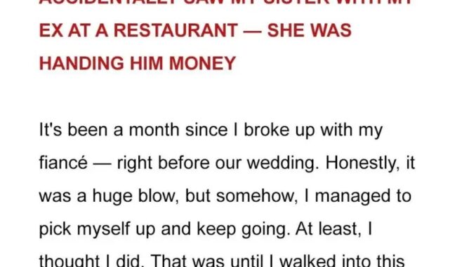 Amber’s life was upended a month after breaking up when she caught her ex-fiancé Richard meeting secretly with her sister Jessica. Amber had trusted Richard completely—he had charmed her family, won their approval, and seemed like the perfect partner. Yet, she witnessed him kissing another woman in a café just weeks before their wedding, leaving her stunned and betrayed. The story hints at escalating drama and Amber’s confrontation with both Richard and her sister, but the full resolution continues beyond this excerpt.