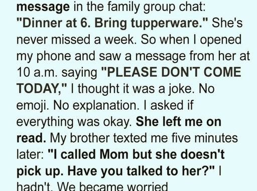 When her next message came — “Sunday dinner is on” — it no longer felt like routine. It felt like a choice: to keep showing up, to love each other with the secrets exposed, and to accept that family isn’t perfection — it’s staying, even after the story breaks.